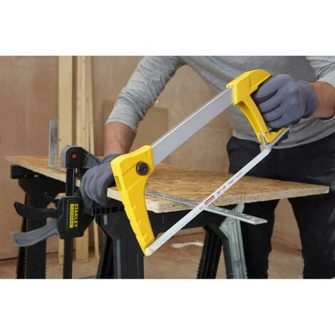 Depuis 1843, STANLEY® est le partenaire privilégié des professionnels. Leader du secteur en matière d’innovation, STANLEY® travaille aux côtés d’experts en outillage et développe des outils dans un souci d’excellence pour en faire «?LA RÉFÉRENCE PRO?». Fière de sa réputation d’excellence, la marque met tout en œuvre pour tester, concevoir et améliorer en permanence ses produits, afin de garantir une qualité et un fonctionnement optimal. STANLEY® a fabriqué certains des outils les plus innovants et utiles au monde, comme par exemple le rabot Bailey®, la lime Surform®, le mètre à ruban PowerLock® ou encore la toute dernière gamme de produits FATMAX®. La scie à métaux bimatiere Turbocut 1-20-110 de STANLEY répond aux besoins des professionnels pour couper des métaux et d’autres matériaux durs tels que le PVC dans les meilleures conditions. En effet, elle est conçue pour un usage intensif et présente d’excellentes caractéristiques avec ses deux angles de coupe à 45 et 90°, la possibilité d’utiliser la partie supérieure de l’archer de façon à pouvoir travailler dans les endroits difficiles d’accès. Et, la tension de lame réglable jusqu’à 135 kg, la capacité de coupe de 120 mm ainsi que la longueur de lame de 305 mm sont idéales afin de vous permettre de réaliser des coupes précises, de qualité et les 24 dents par pouce sont parfaites pour des découpes rapides. Vous travaillez vite et bien avec cet outil. Par ailleurs, la scie à métaux bimatiere Turbocut 1-20-110 STANLEY est également conçue pour vous offrir une bonne sécurité avec la poignée bimatière idéale pour une prise en main sûre et un confort d’utilsation. Elle est aussi très pratique avec la possibilité de stocker 8 lames dans l’armature. L’outil à main est livré avec une lame bimétal de 300 mm, avoyage alterné 10 dents par cm.