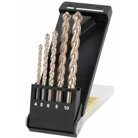 5 forets béton précision 4, 5, 6, 8, 10mm.