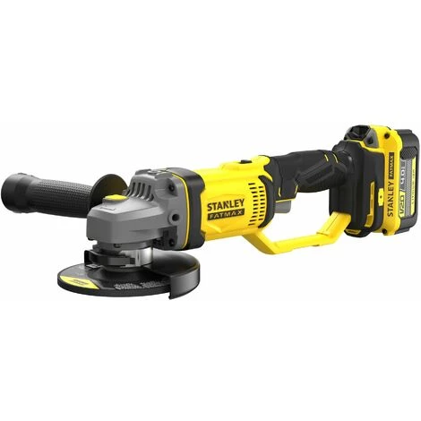 Machine génération V20, plus puissante, grâce à l’amélioration du moteur et les batteries professionnelles. 2 batteries 4Ah et 1 chargeur 2h. 8500 tr/min, 125mm. Nouvelle génération V20 plus puissante grâce aux batteries professionnelles – LITHIUM-ION cellules SAMSUNG 18650. Notre batterie lithium-ion V20 ne vous laissera pas tomber, où que vous soyez, quel que soit l’endroit où vous travaillez et ce pour une durée toujours plus longue Les batteries 18V 4 Ah délivrent l’autonomie et la performance nécessaires aux travaux les plus lourds. Forte productivité de la machine, autonomie supérieure pour réaliser plus d’applications. Vitesse d’exécution élevée jusqu’à 8500 tours/minute pour des coupes franches, l’enlèvement de matière et les finitions. Ergonomie étudiée pour des utilisations prolongées et régulières. Grande maniabilité : facilité d’appréhension grâce à sa poignée latérale à 3 positions et au carter orientable sans outil Blocage de l’arbre pour un changement du disque facile et rapide. Equipée d’un carter en métal permettant une meilleure dissipation de la chaleur lors des utilisations prolongées. Indicateur de charge embarqué sur la batterie pour une meilleure organisation sur les chantiers Fait partie de la nouvelle plateforme de machines sans fil LITHIUM-ION 18V STANLEY® FATMAX® V20.